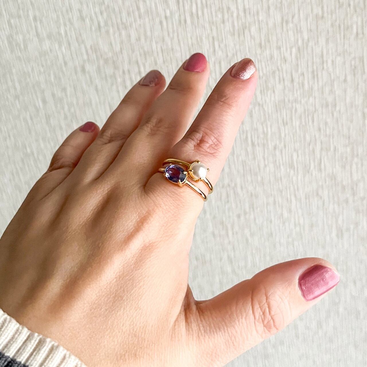「色を楽しむラウンドリング」と重ねてつけると、小さいながら華やかさを楽しめます。
